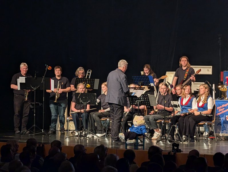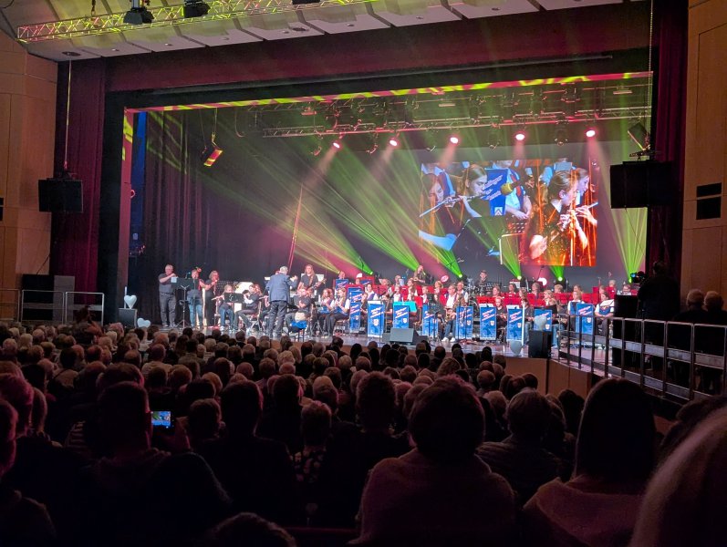 Am 25.10.2025 spielte das Orchester 7/8+ auf Einladung der Kehdinger Blasmusikanten im Rahmen des traditionellen Jahreskonzerts der „Kehdinger“ die Stücke “Viva la Vida“, “Song for San Miguel“ und “Pirates of the Caribbean“ auf der großen Bühne vor vollbesetztem Haus. Dank intensiver Vorbereitung meisterten die jungen Musikerinnen und Musiker die Aufgabe mit Bravour und ernteten viel Applaus.