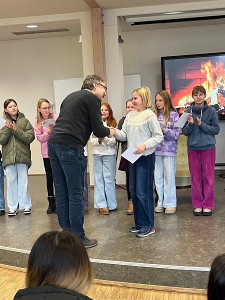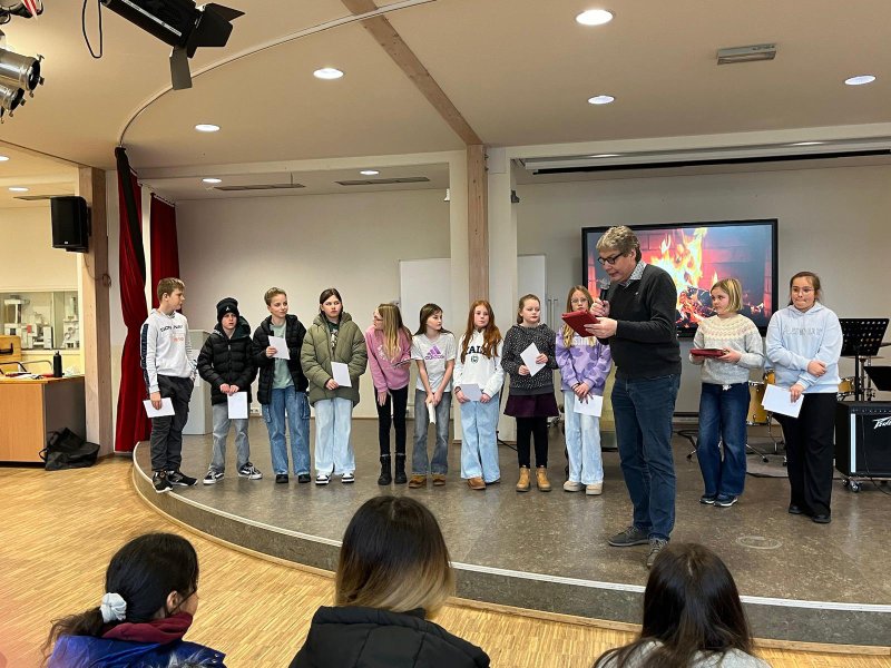 Die Klassensiegerinnen und Klassensieger traten mit viel Mut und Können gegeneinander an. Zunächst lasen sie drei Minuten aus einem selbst gewählten Buch vor, danach folgte ein weiterer zweiminütiger Abschnitt aus einem unbekannten Fremdtext. Die Aufregung war spürbar – doch alle Teilnehmenden meisterten ihre Aufgabe mit großer Souveränität.