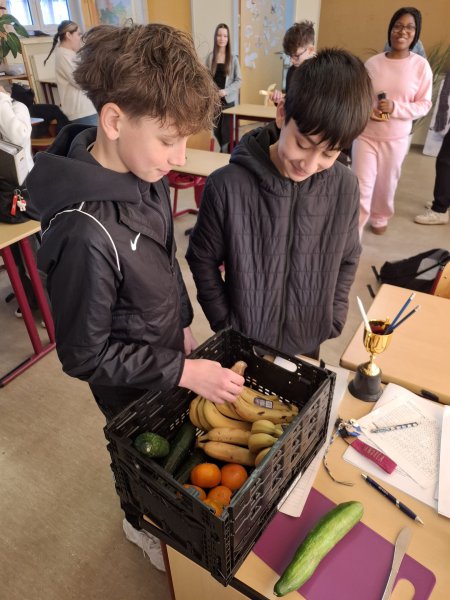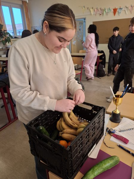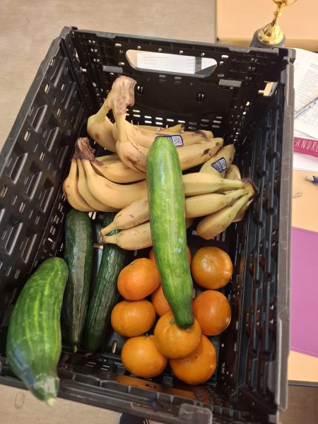 Seit September bekommt die Elbmarschen-Schule Drochtersen Schulobst. Jeden Dienstag dürfen die Schülerinnen und Schüler der 5. und 6. Klassen eine Kiste mit frischem Obst und Gemüse von den Hausmeistern abholen. Diese werden von Eltern am Nachmittag zuvor mit großem Engagement vorbereitet. Es gibt Äpfel, Gurken, Birnen, Karotten und manchmal auch Kohlrabi, Paprika, Bananen oder Mandarinen. Viele Kinder freuen sich über das frische Obst und Gemüse und die Kisten sind in den Klassen meist schon am Ende des Tages leer. Danke an die 6H1 für die schönen Fotos!