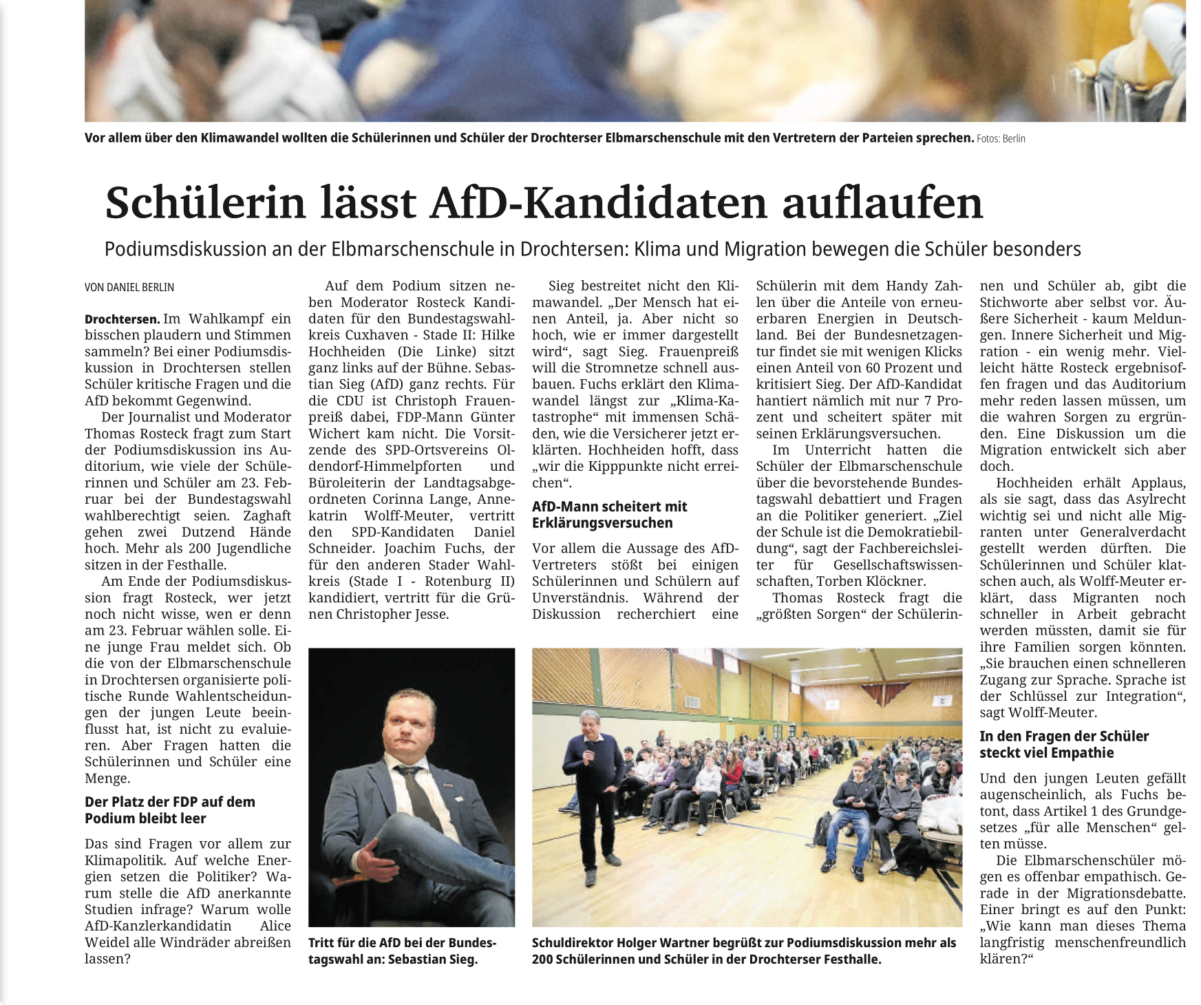 Bericht Podiumsdiskussion zur Bundestagswahl an der EMS aus dem Stader Tageblatt vom 31.01.2025 | |