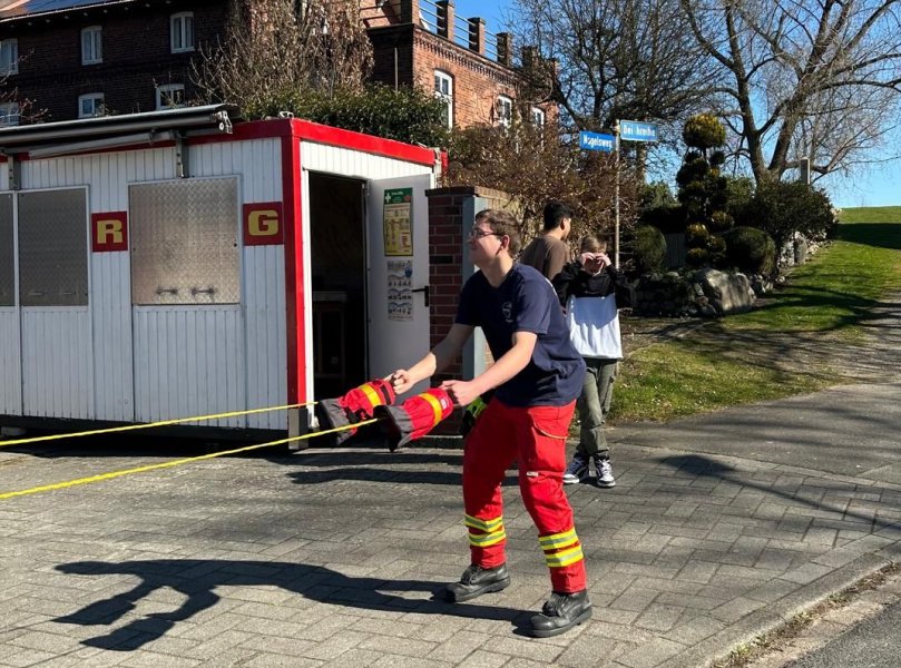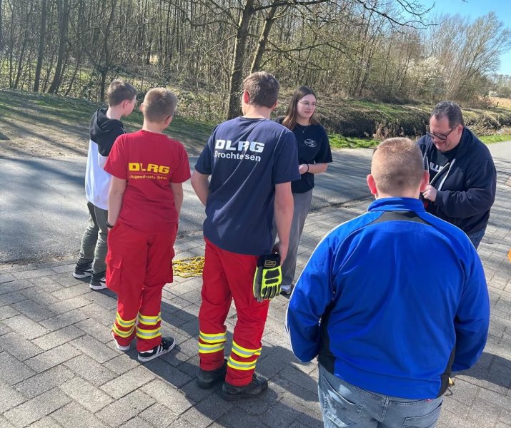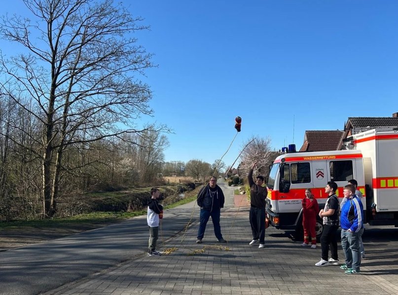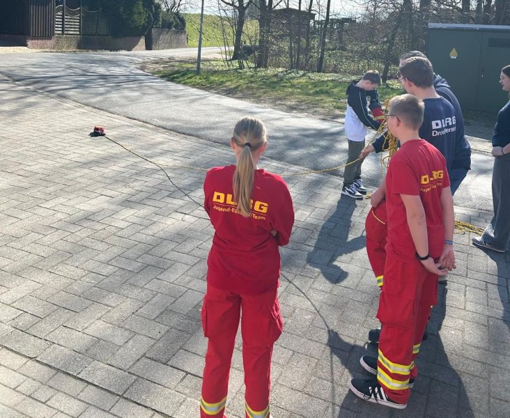 Dazu haben sie am 1. Tag unterschiedliche Knoten erlernt und erfahren, was man bei der DLRG macht und wofür sie zuständig ist. Am 2. Tag war die Projektgruppe im DLRG-Hauptquartier in Drochtersen und begutachtete die Fahrzeuge mit ihren Details. Sie haben außerdem ein Suchspiel veranstaltet. Dieses Spiel heißt Mister X, dabei muss man verschiedene Punkten aufsuchen und dann den anderen funken, dass man dort angekommen ist. Am 3. Tag besuchten sie das Schwimmbad, um dort verschiedene Schwimm- und Rettungstechniken mit dem Wurfsack kennenzulernen. Sie übten zum Beispiel das Abschleppen, das Schieben und den 5-Kilo-Rettungsring zu verwenden.
