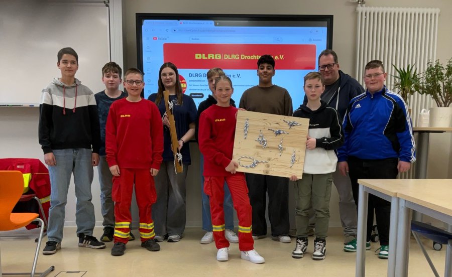 Die 14 Schülerinnen und Schüler in dem Projekt DLRG haben sich in der Projektwoche mit verschiedenen Aufgaben der DLRG beschäftigt.