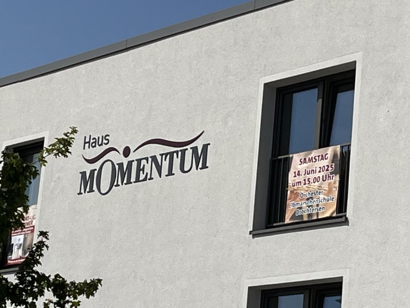 Nachdem das Orchester 7/8+ im März bereits im Seniorenheim „Mea Fortuna“ in Drochtersen gespielt hatte, bot sich am 14.06.25 die Gelegenheit, den Bewohnerinnen und Bewohnern sowie den Angestellten im „Haus Momentum“ in Hammah ein sommerliches Musikprogramm zu präsentieren. Dabei zeigte sich das Publikum sehr interessiert und spendete reichlich Applaus für die Musiker der Elbmarschen-Schule.