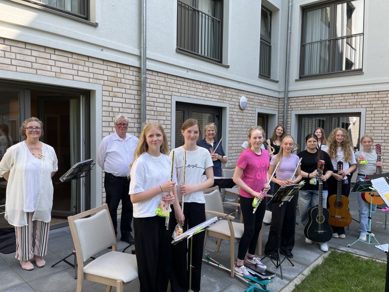 Während sich einerseits die Bewohner über den Besuch der jungen Musiker freuten, ergab sich auf der anderen Seite für diese eine Gelegenheit zur Kontaktaufnahme mit den Senioren und ihren Lebensumständen im Heim – eine wertvolle Erfahrung, die für manche vielleicht auch eine berufliche Perspektive beinhaltet. Möglicherweise tragen die freundliche Aufnahme und die positiven Reaktionen dazu bei, dass der eine oder die andere sich eine Ausbildung in einem sozialen Beruf vorstellen kann.