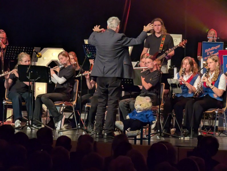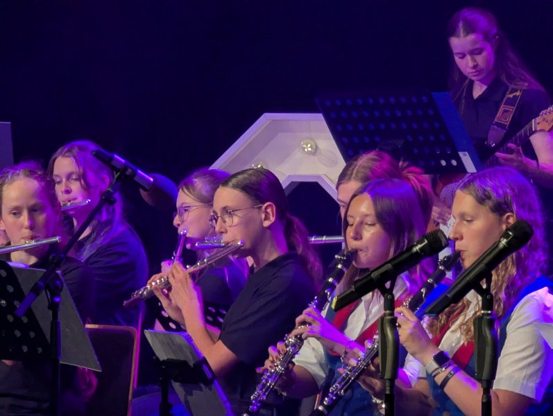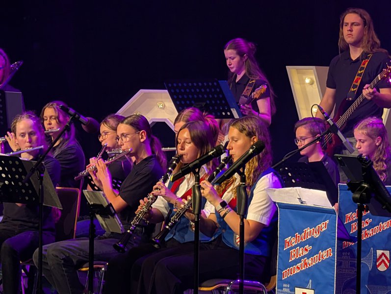 Am 25.10.2025 spielte das Orchester 7/8+ auf Einladung der Kehdinger Blasmusikanten im Rahmen des traditionellen Jahreskonzerts der „Kehdinger“ die Stücke “Viva la Vida“, “Song for San Miguel“ und “Pirates of the Caribbean“ auf der großen Bühne vor vollbesetztem Haus. Dank intensiver Vorbereitung meisterten die jungen Musikerinnen und Musiker die Aufgabe mit Bravour und ernteten viel Applaus.