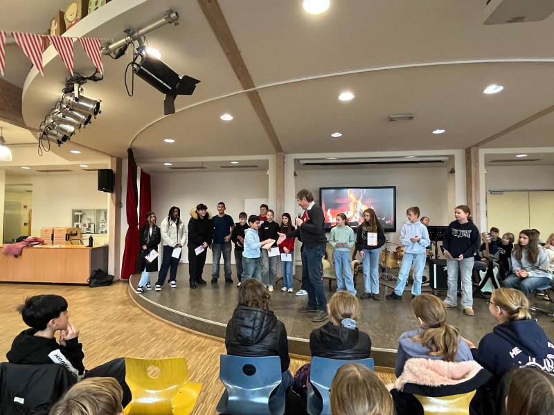 Die Klassensiegerinnen und Klassensieger traten mit viel Mut und Können gegeneinander an. Zunächst lasen sie drei Minuten aus einem selbst gewählten Buch vor, danach folgte ein weiterer zweiminütiger Abschnitt aus einem unbekannten Fremdtext. Die Aufregung war spürbar – doch alle Teilnehmenden meisterten ihre Aufgabe mit großer Souveränität.