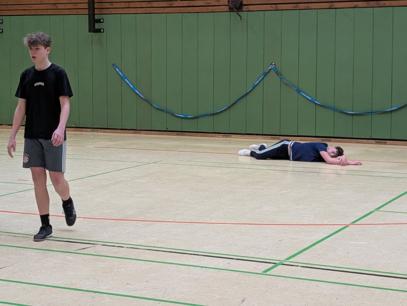 Im sportlichen Ablauf zeigte es sich, dass alle Klassen in der Lage dazu waren, Punkte zu sammeln, aber schnell wurde klar, dass der Turniersieg zwischen der 8R2 und der 8G2 entschieden werden musste. Tatsächlich war es dann abschließend so, dass beide Teams punktgleich waren und auch der direkte Vergleich ein Unentschieden brachte. Die finale Entscheidung fiel dann in einer Art „Elfmeterschießen“. Beide Klassen stellten je 5 Freiwurfschützen und die bessere Treffsicherheit entschied dann über den Turniersieg. Hierbei setzte sich die 8G2 durch, der Jubel war groß und nach der Pokalübergabe gab es dann natürlich noch ein Siegerfoto.