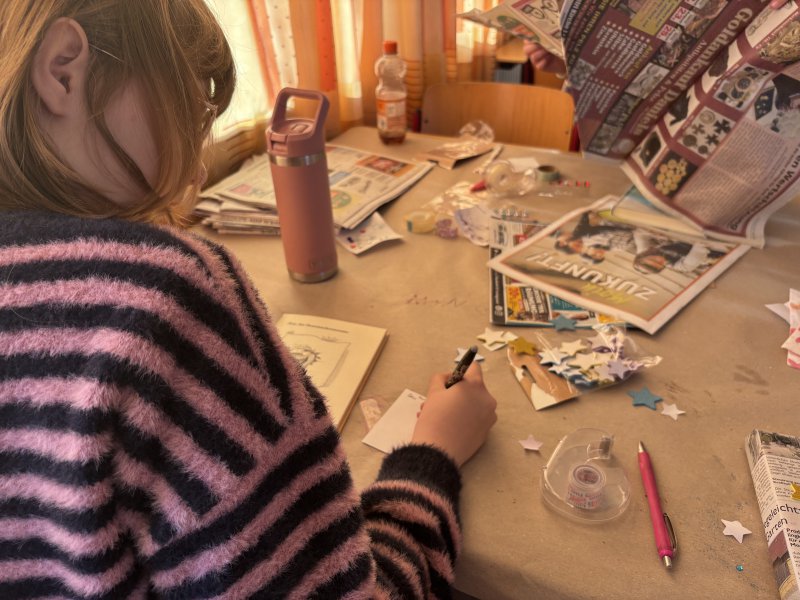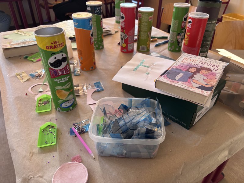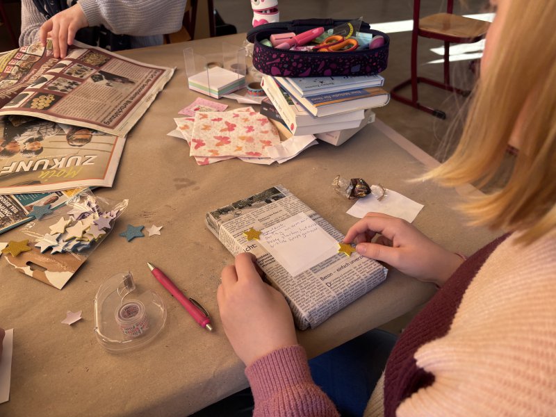 In diesem Projekt dreht sich alles um Bücher: Die Teilnehmenden wählen ihre Lieblingsbücher aus, indem sie sich Cover und Klappentexte anschauen und entscheiden, welche Geschichten sie am meisten ansprechen. Anschließend gestalten sie dazu eigene Arbeitsblätter, dekorieren und verpacken die Bücher liebevoll – ganz kreativ und individuell.