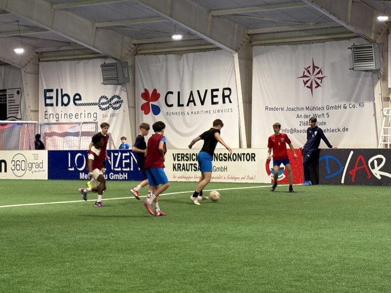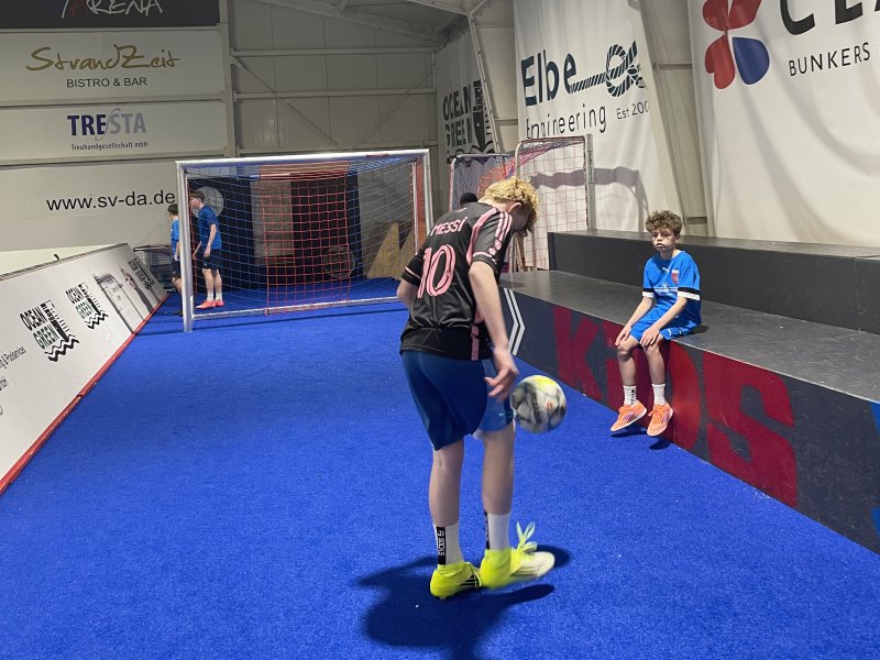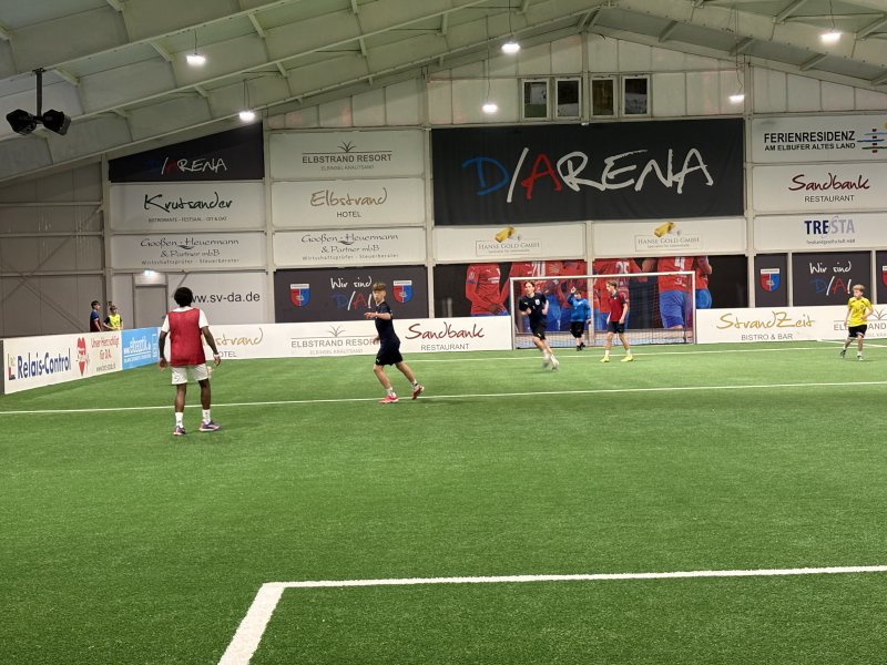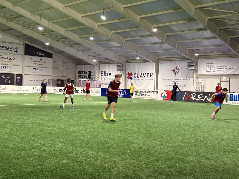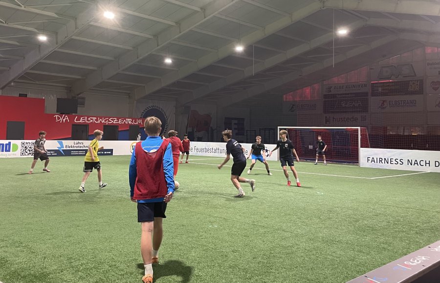 In der Projektwoche findet in der D/Arena das Projekt "Fußball mit Herz und Hirn" statt. 42 Schüler*innen aus allen Schulzweigen und aus den Jahrgängen 5-10 beschäftigen sich in den nächsten Tagen intensiv mit Fußball, Spaß und Fairness.