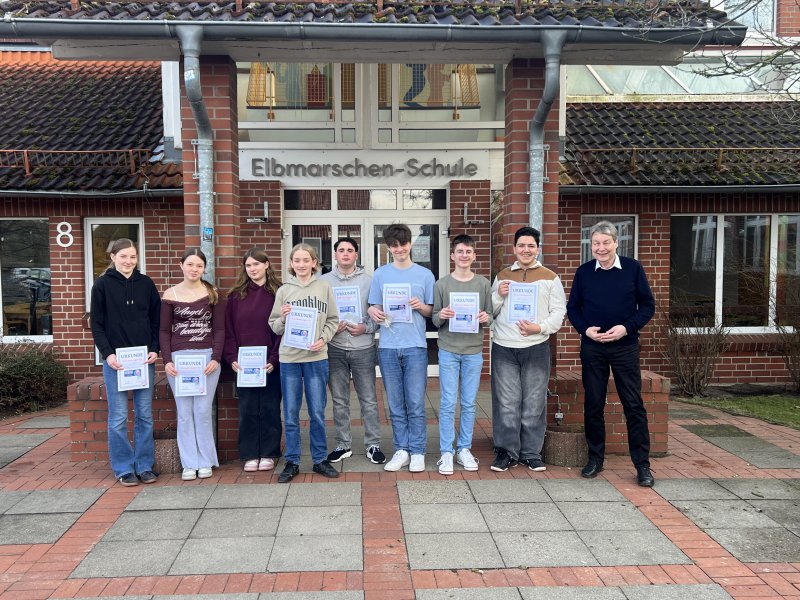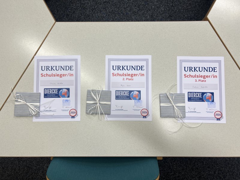 Auch im Jahr eins nach dem 25. Jubiläum des Diercke Geographie-Wettbewerbs nahm die Elbmarschen-Schule wieder am Diercke-Geographie-Wettbewerb teil. Insgesamt haben sich 60 Schüler*innen aus neun verschiedenen Klassen aller drei Schulzweige den Fragen des Wettbewerbs gestellt. Als Klassensieger gingen in der ersten Runde folgende Schülerinnen und Schüler hervor: Mia Kern (7R2), Johanna von Bargen (8H1), Adil Taymouni (8R2), Elias Scherzinger (8G1), Thilo Wille (9R2), Asya Kosar (9G1), Lilly Ramm (9G2), Aaron Sandmann (9G3) und Yalcin Köprülü (10H1).