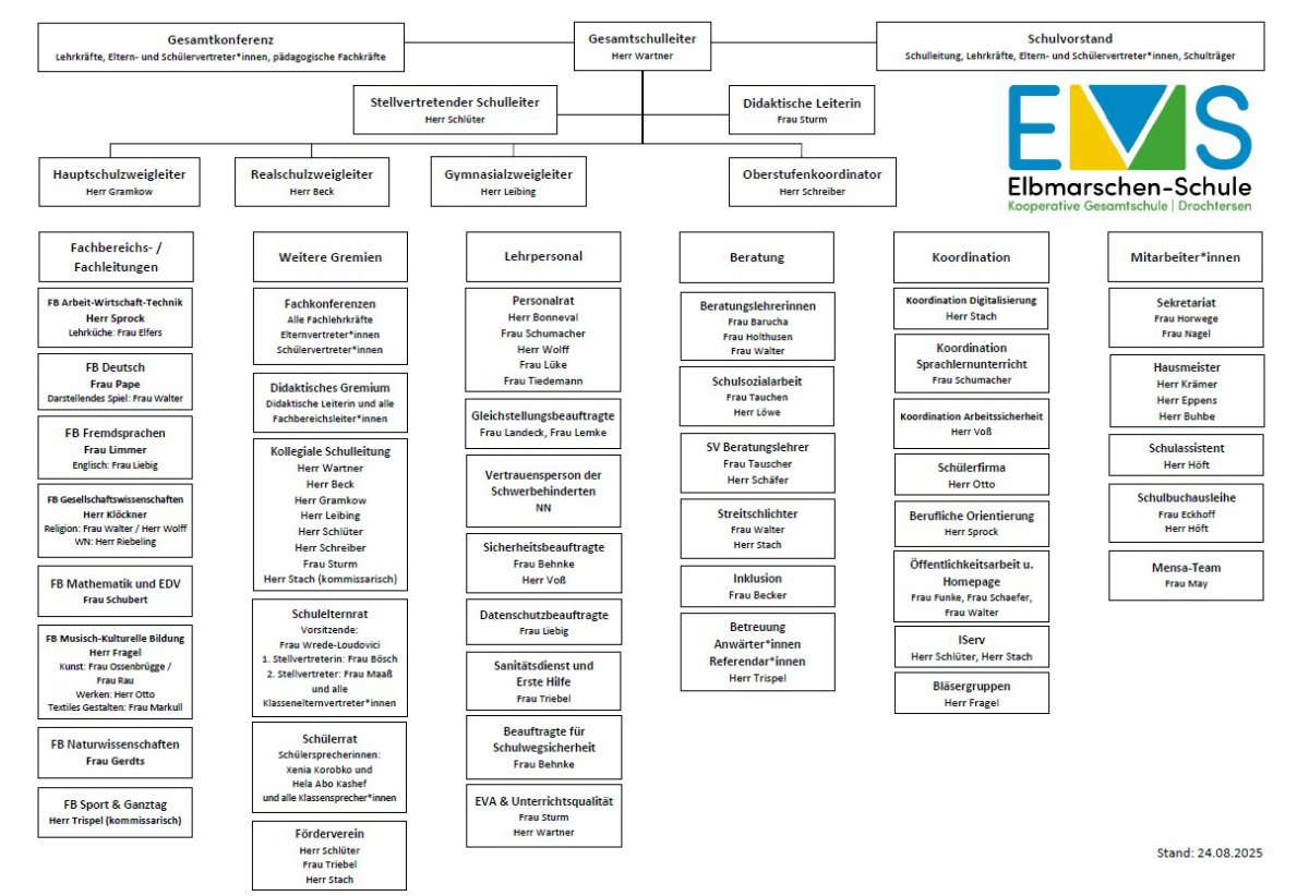 Wer macht was an der Elbmarschen-Schule? Unser akutelles Organigramm gibt darüber Auskunft.
